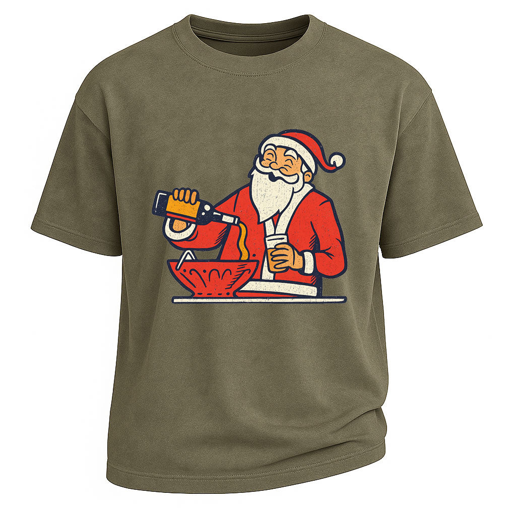Maglietta natalizia divertente con Babbo Natale che versa birra