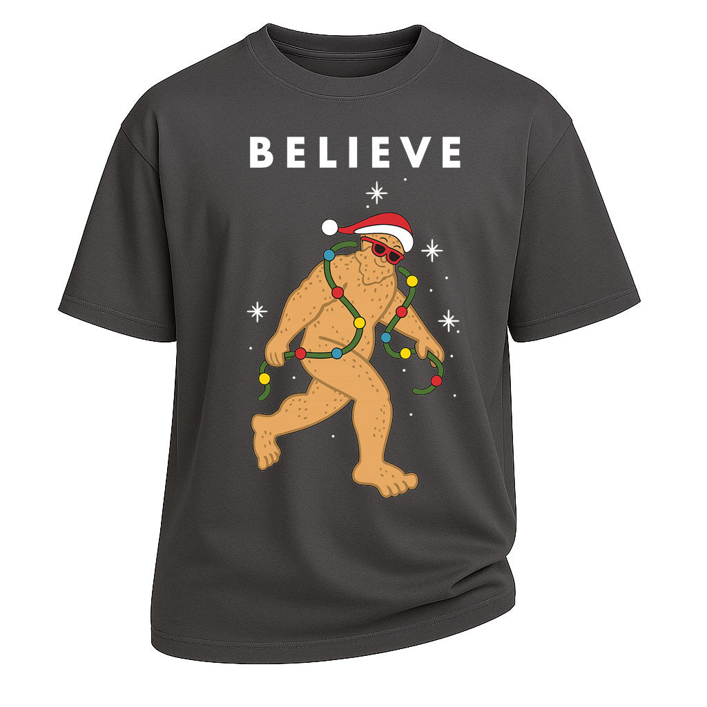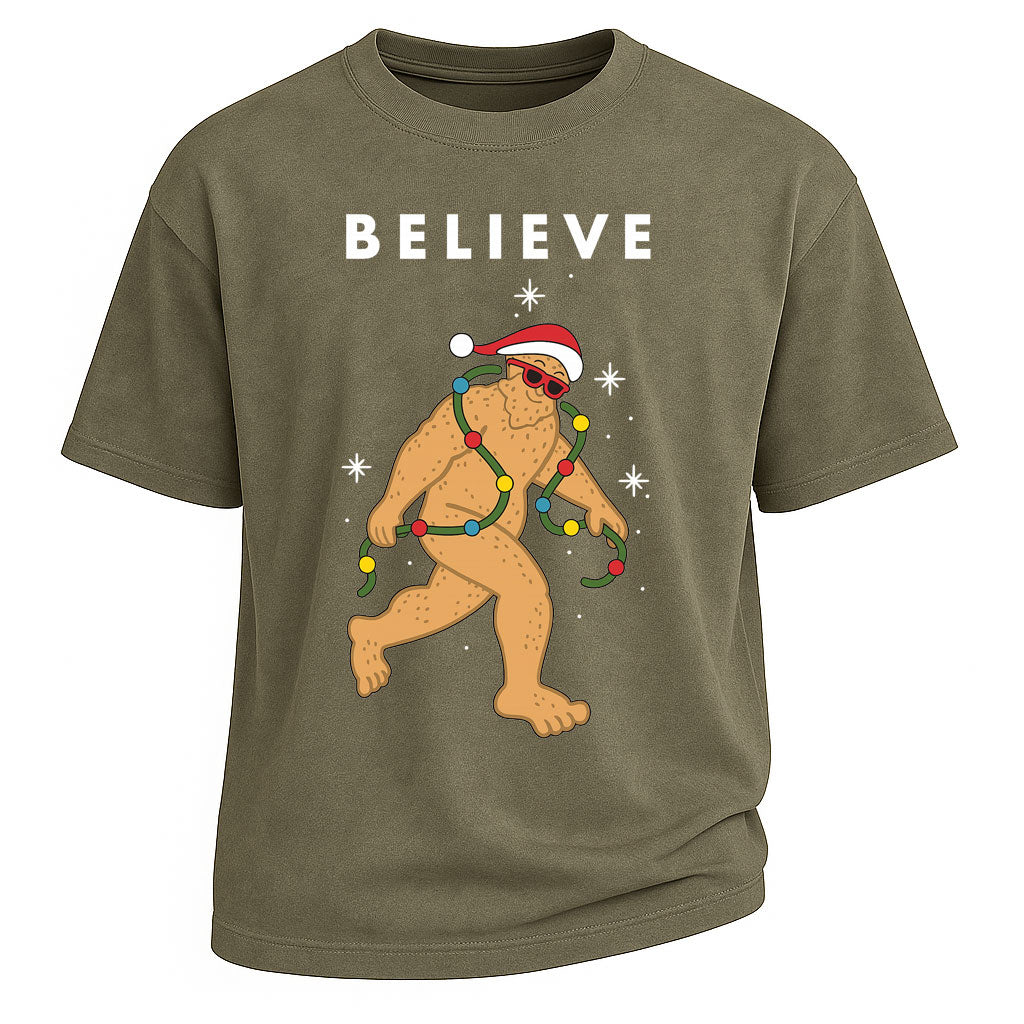 Maglietta natalizia divertente Believe Bigfoot