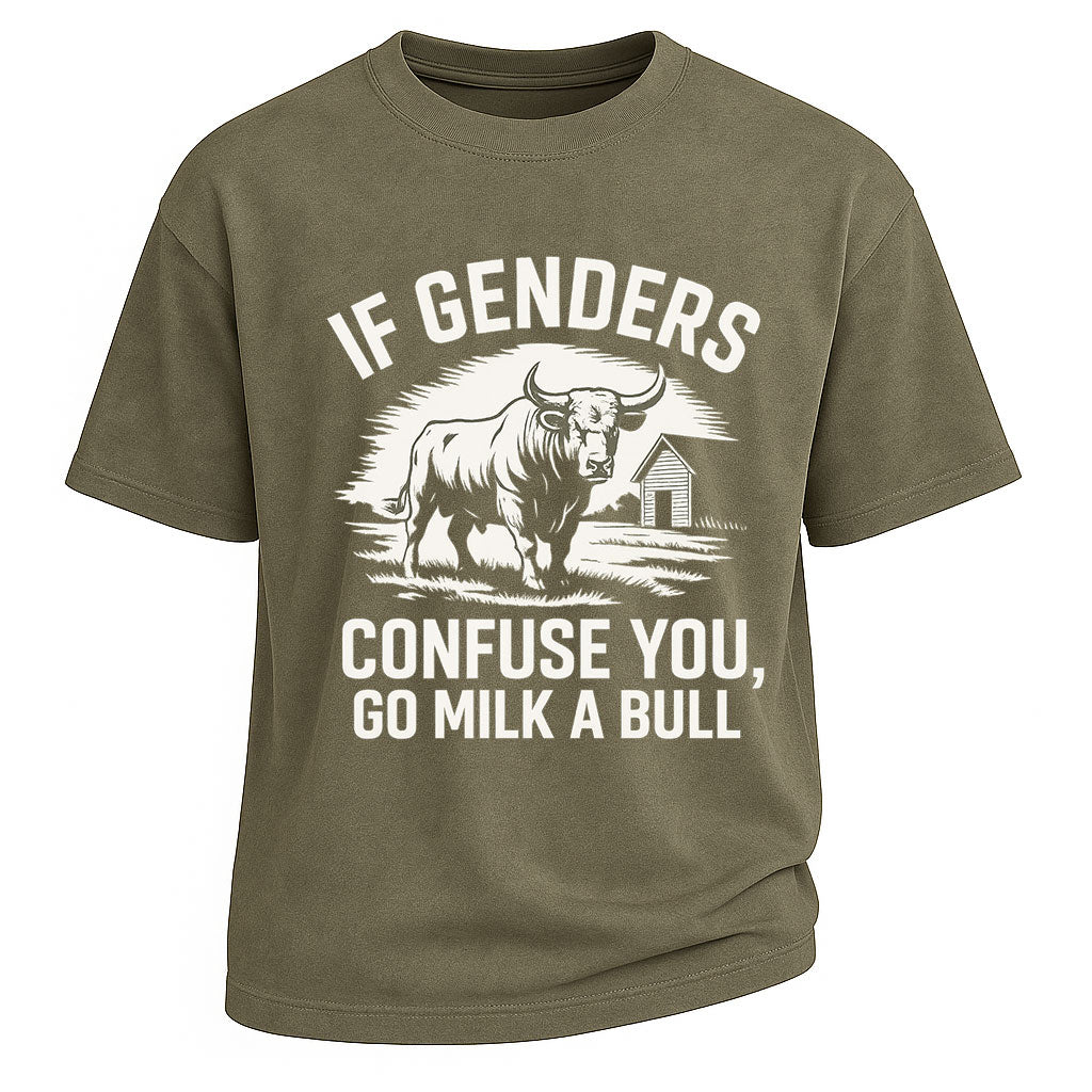 Schietta, audace e pensata per smuovere le acque: questa maglietta LouMark non usa mezzi termini. Con la classica illustrazione di un toro western e lo slogan incisivo "Se i sessi ti confondono, vai a mungere un toro", è pensata per gli uomini che esprimono la propria opinione e tengono duro.
