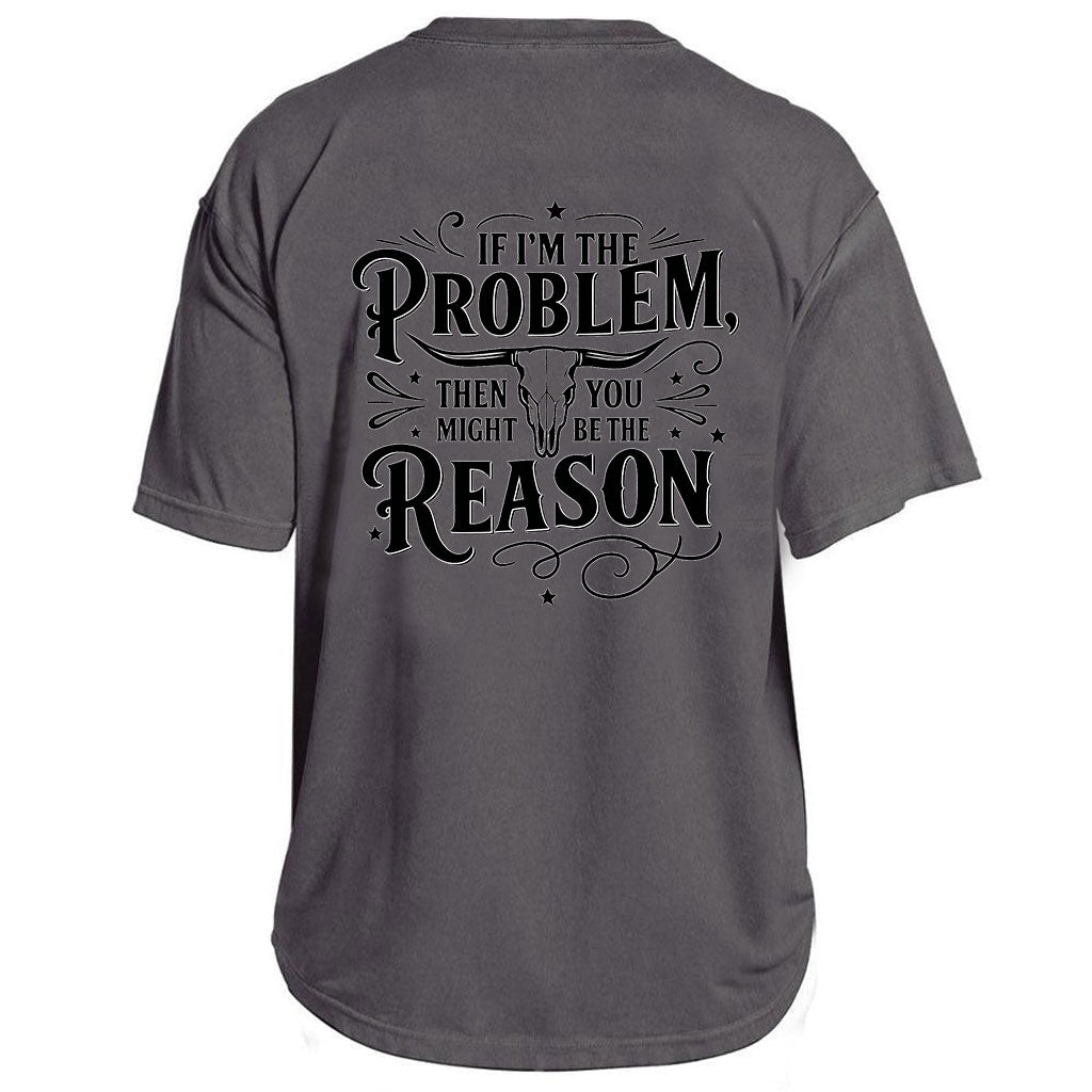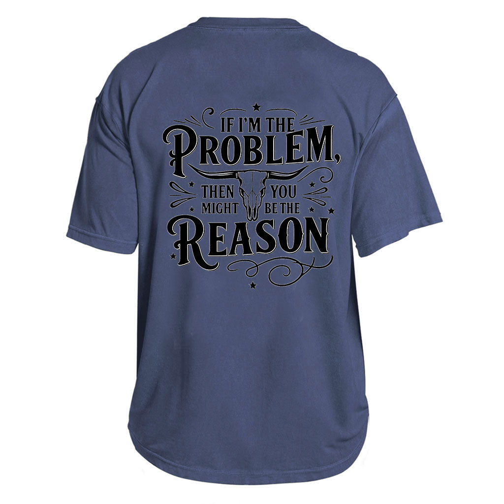 Afferma il tuo atteggiamento in audace stile Western con la nostra maglietta "If I'm the Problem, Then You Might Be the Reason". Caratterizzata da un sorprendente design double-face, la parte anteriore presenta il logo minimalista LouMark con il teschio di manzo per un branding autentico, mentre la parte posteriore presenta una scritta Western ornata incorniciata da corna di longhorn e dettagli a stella. Realizzata in un tessuto di cotone lavato in capo per un tocco morbido e vintage, è la maglietta perfetta per chi non ha paura di dire ciò che pensa. Indossala sotto il cielo stellato o al bar locale: in entrambi i casi, il messaggio è forte e chiaro.