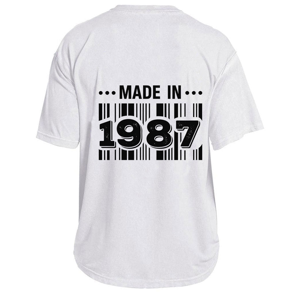 Indossa il tuo anno di nascita come un distintivo d'onore con la nostra t-shirt "Made in 1987". Caratterizzata da un'audace grafica con codice a barre e l'iconico anno stampato, questa t-shirt è perfetta per chi si è guadagnato il suo vintage. Realizzata in morbido cotone traspirante, sfoggia la qualità LouMark dall'aspetto vissuto con una finitura moderna e pulita. Che tu voglia festeggiare un traguardo importante o semplicemente ricordare al mondo dove è iniziata la grandezza, questa t-shirt offre un look disinvolto e di tendenza a ogni utilizzo.