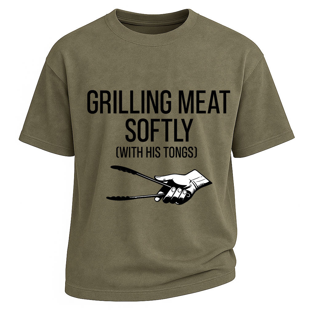 Maglietta divertente per barbecue con scritta "Grigliare la carne dolcemente"