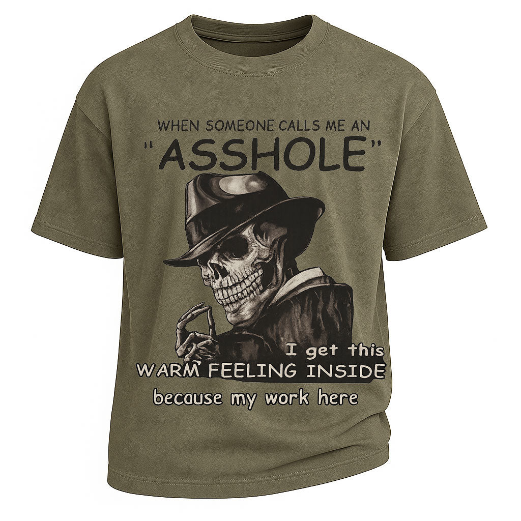 Maglietta con scheletro stronzo che dà una sensazione di calore