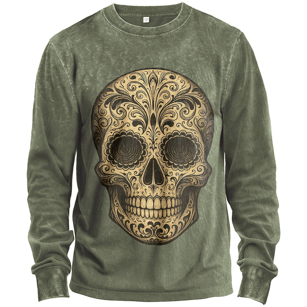 Maglietta vintage a maniche lunghe con teschio di zucchero