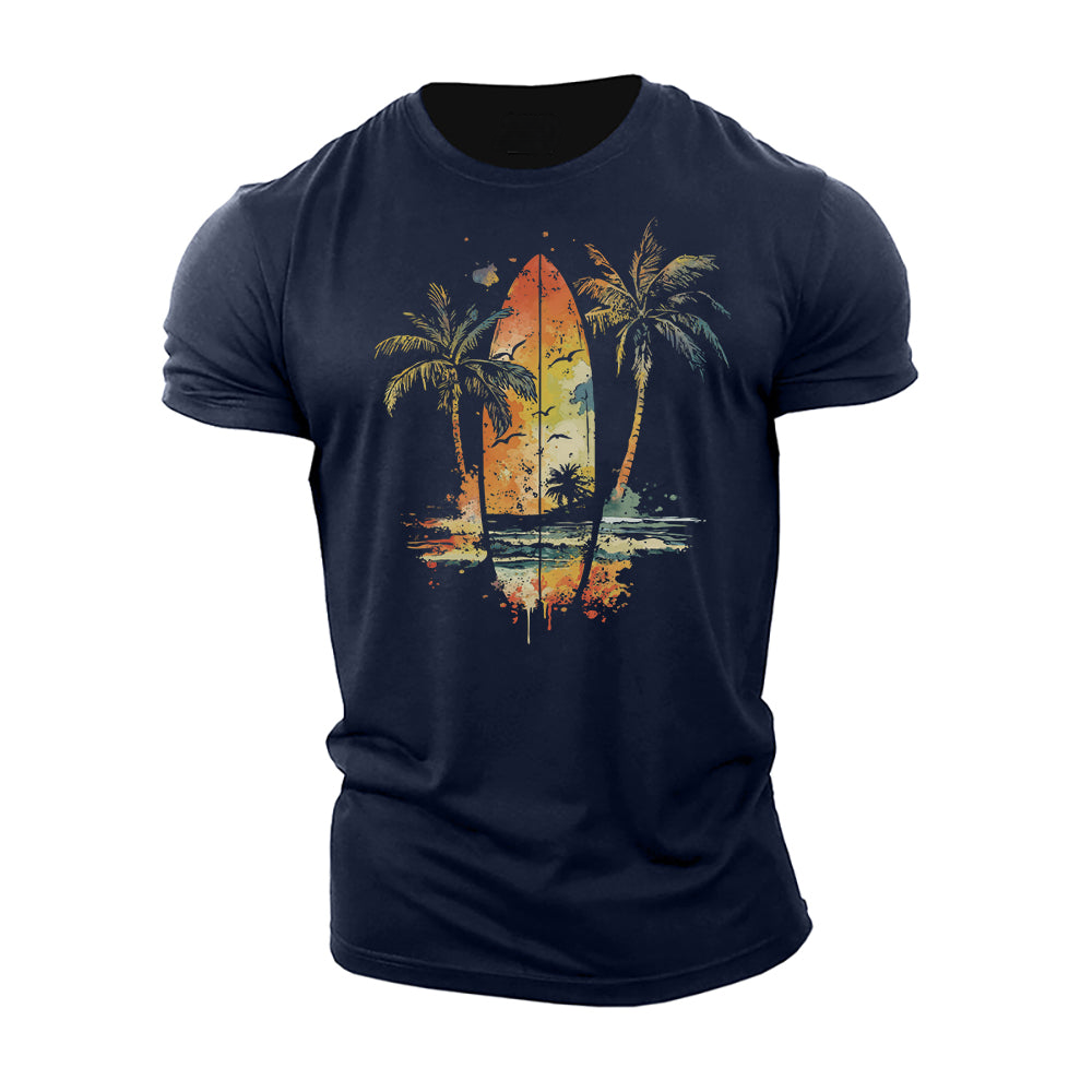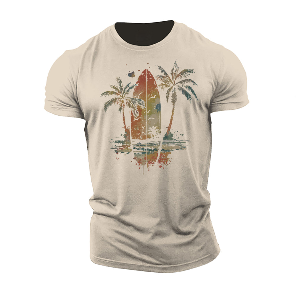 Maglietta acquerello con tavola da surf vintage e palma
