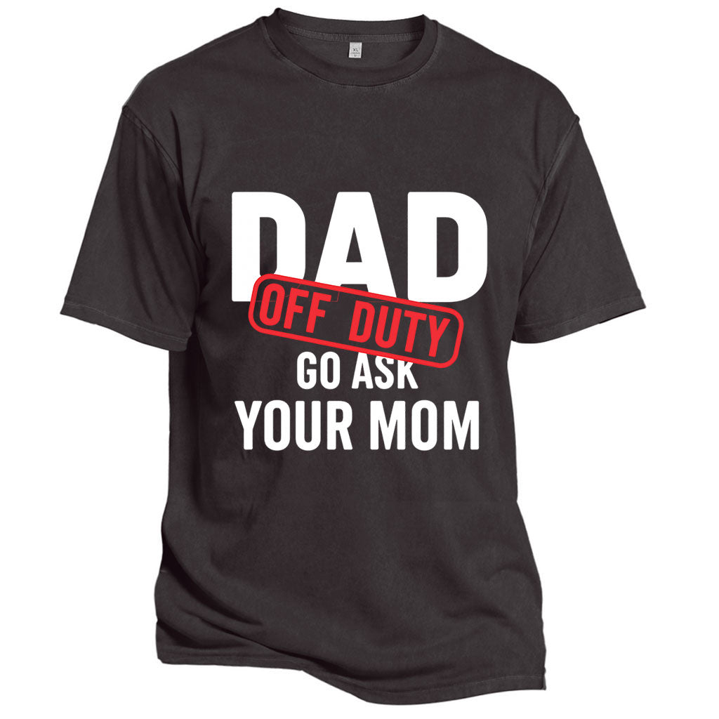 A volte papà ha bisogno di una pausa, e questa maglietta dice tutto. La maglietta LouMark "Papà fuori servizio – Chiedi a tua mamma" è l'uniforme perfetta per quei momenti in cui non è più genitore. Il testo bianco in grassetto e la stampa rossa "OFF DUTY" su una classica maglietta nera la rendono un capo perfetto per la Festa del Papà, le grigliate in famiglia o semplicemente per rilassarsi sul divano. L'umorismo incontra il comfort grazie al nostro morbido tessuto di cotone e alla vestibilità comoda.