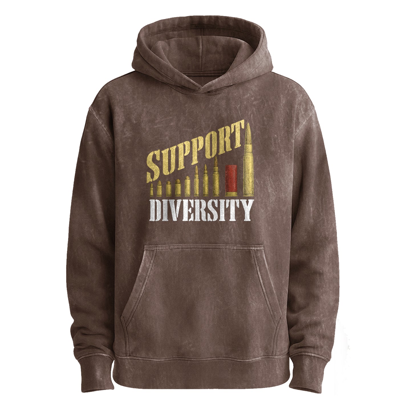 Fai una dichiarazione in stile vintage. Questa felpa con cappuccio verde militare presenta una serie di silhouette retrò e consumate con la scritta in grassetto "Support Diversity". Realizzata in robusto cotone 100% da 350 g e lavata in capo, per una sensazione di comfort fin dal primo giorno.