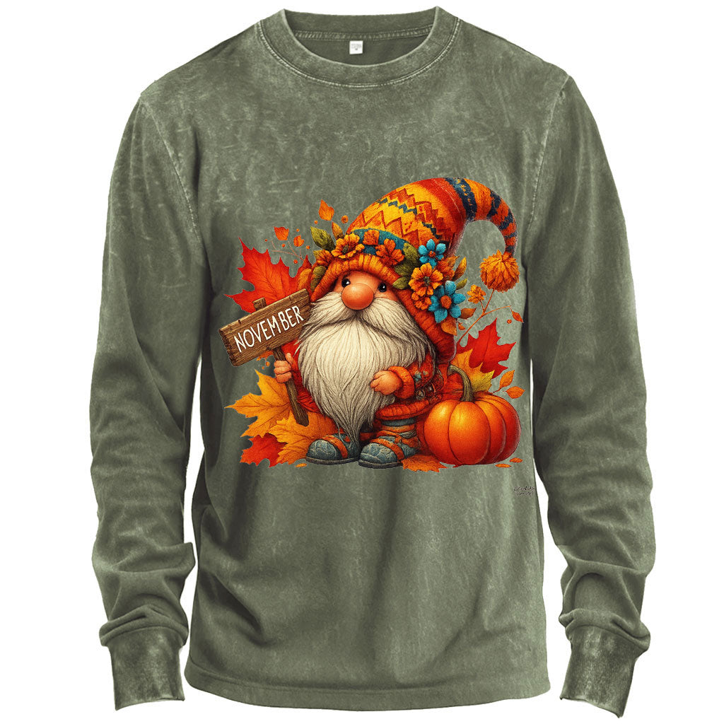 Maglietta a maniche lunghe con zucca e gnomo del Ringraziamento