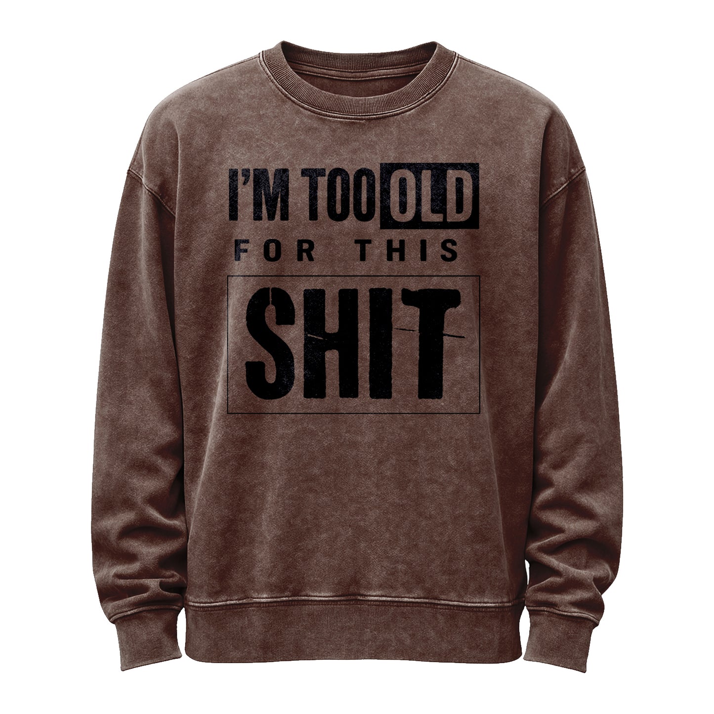 Felpa girocollo con scritta "Sono troppo vecchio per questa merda"