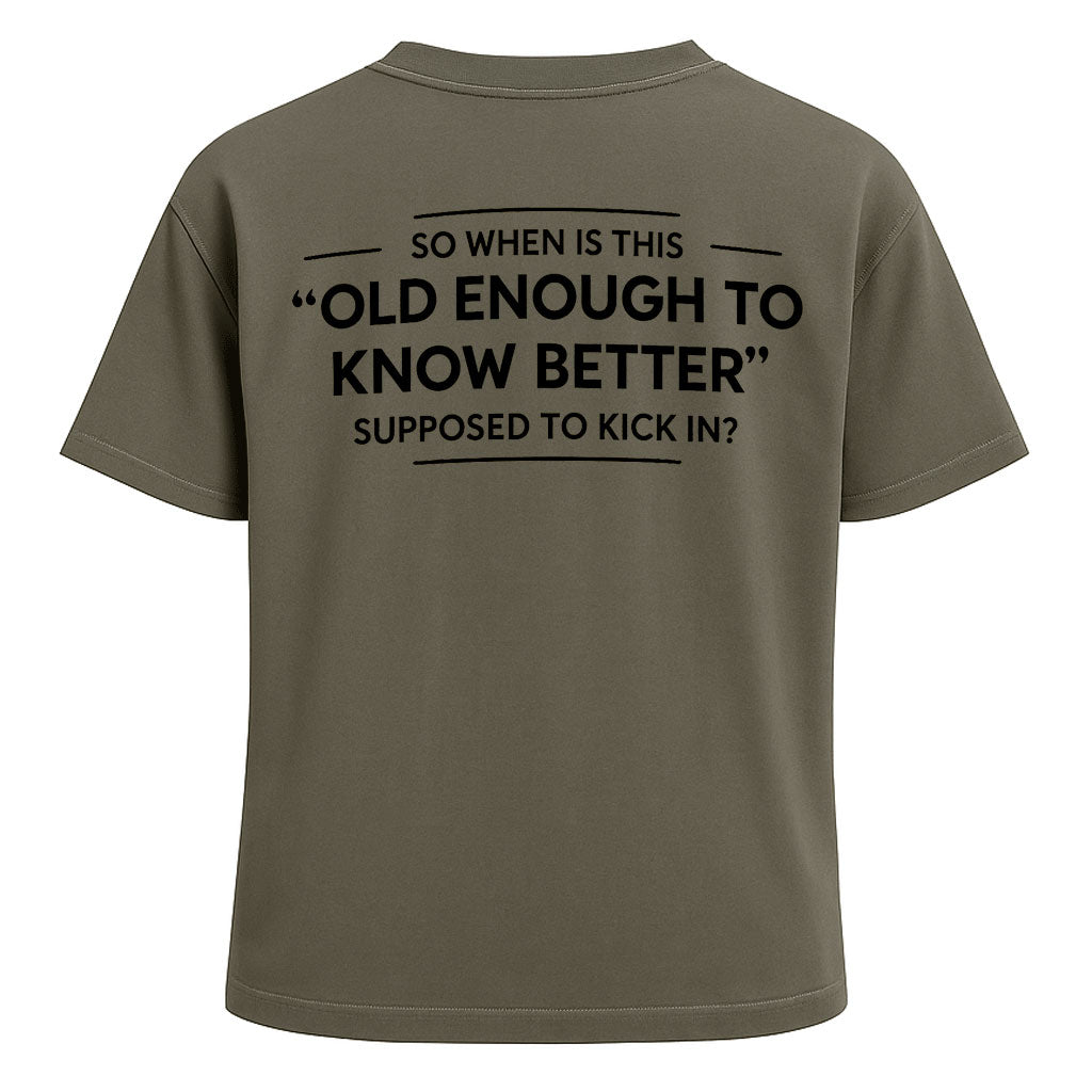 Maglietta "Nessun motivo per comportarsi come se fossi della mia età"