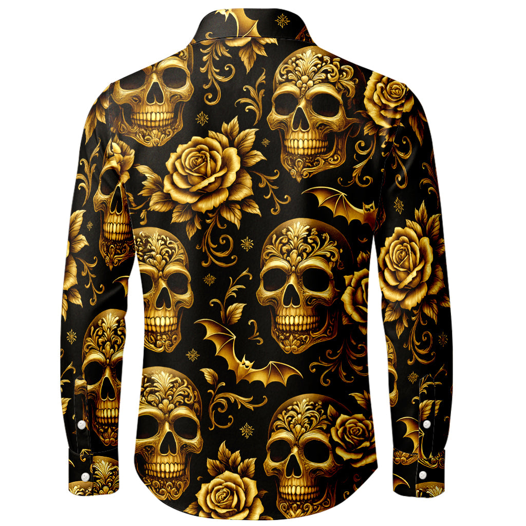 Maglietta a maniche lunghe con stampa 3D di teschi e rose barocchi dorati