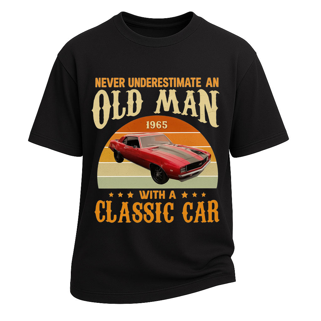 Mostra il tuo umorismo vintage con questa t-shirt a maniche corte con la grafica "Old Man With Classic Car". Realizzata in 100% cotone 260G , questa maglietta pesante offre resistenza e comfort. Caratterizzata da un'audace stampa in stile retrò di un'auto d'epoca rossa con lo slogan "NEVER UNDERESTIMATE AN OLD MAN WITH A CLASSIC CAR", trasmette nostalgia con carattere. La vestibilità standard e il design a girocollo la rendono una scelta facile da indossare tutti i giorni, sia per un abbigliamento casual che per un look streetwear.