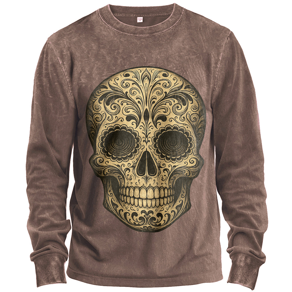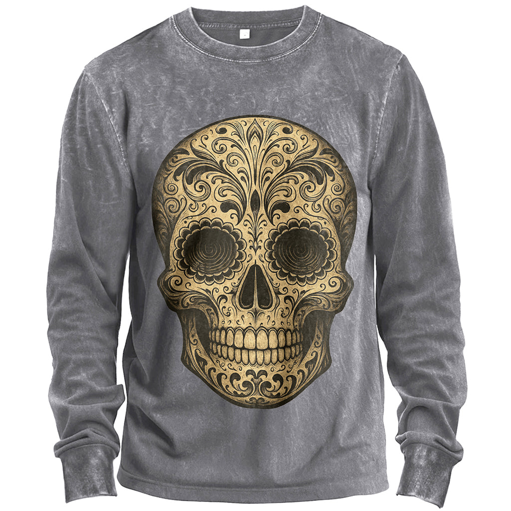 Maglietta vintage a maniche lunghe con teschio di zucchero