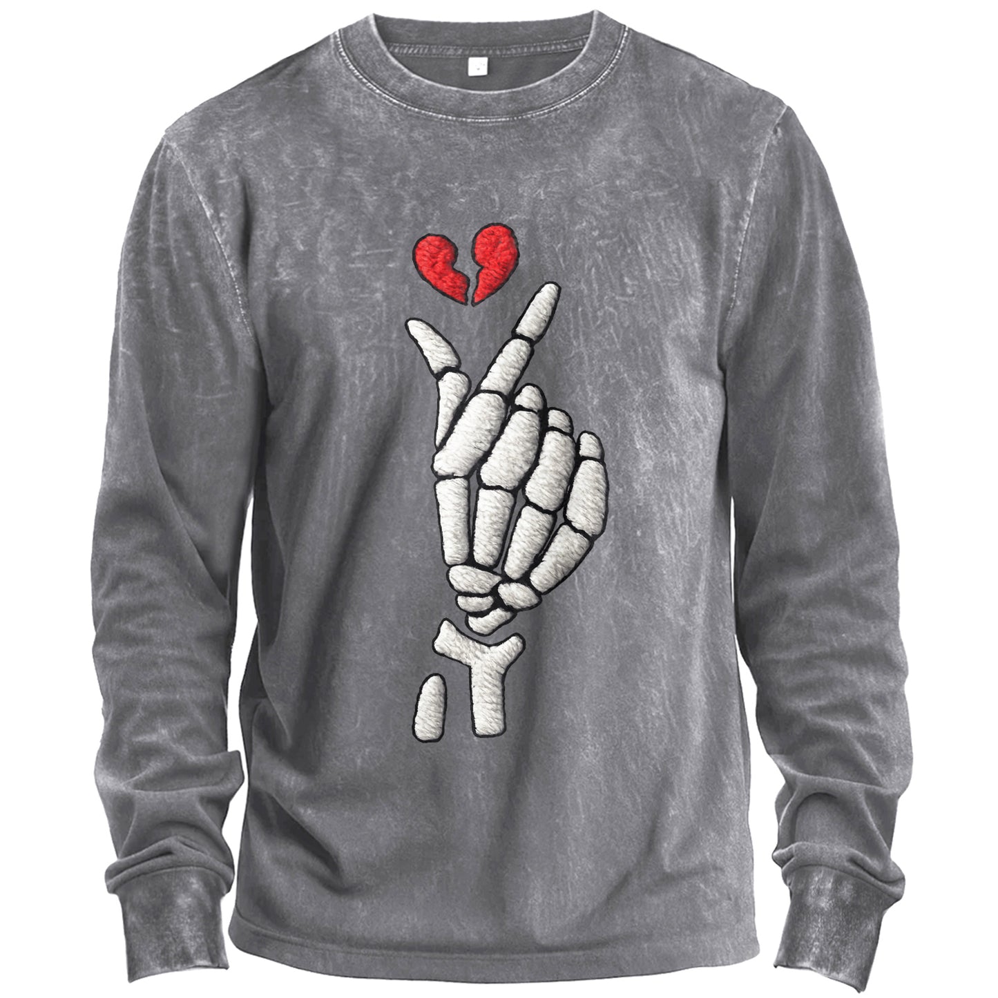 Maglietta a maniche lunghe con cuore e dito scheletro