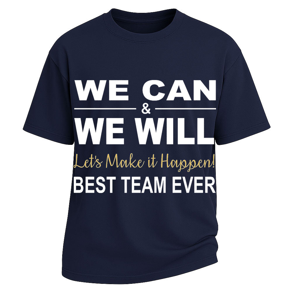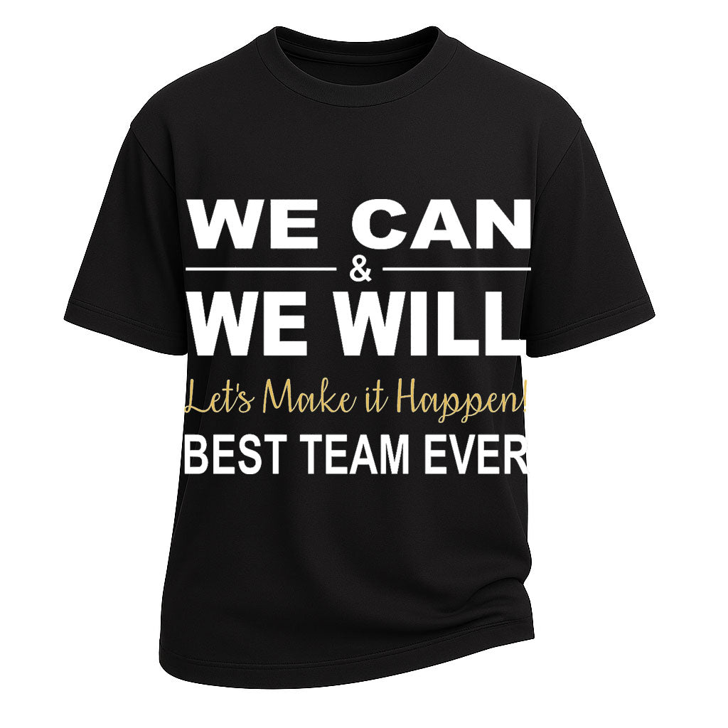 Mostra l'orgoglio per la tua squadra con la maglietta We Can We Will Team Spirit di LouMark. Realizzata in resistente cotone 100% 260G e con una vestibilità oversize, questa maglietta unisce comfort e motivazione. L'audace slogan frontale recita "WE CAN & WE WILL – Let's Make it Happen! BEST TEAM EVER", rendendola la scelta perfetta per eventi di gruppo, team di lavoro o riunioni di famiglia. Pensata per chi crede nell'unità, nella forza e nel raggiungimento degli obiettivi insieme.