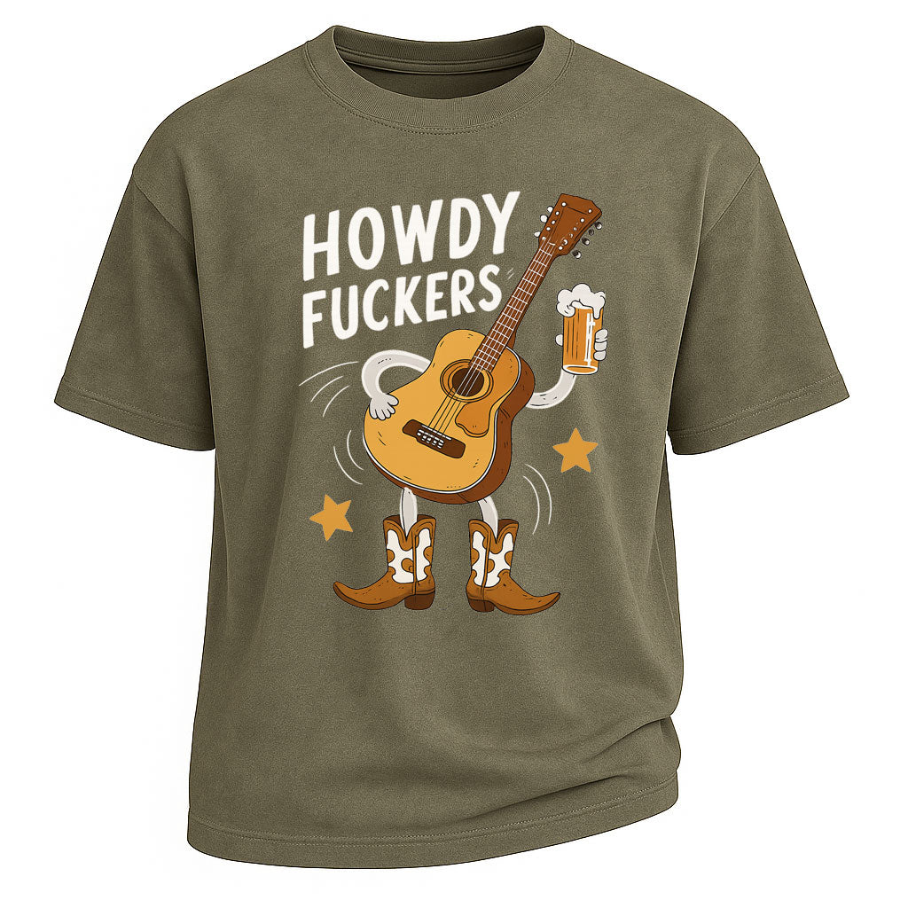 Howdy Fuckers Cowboy Guitar Grafik-T-Shirt