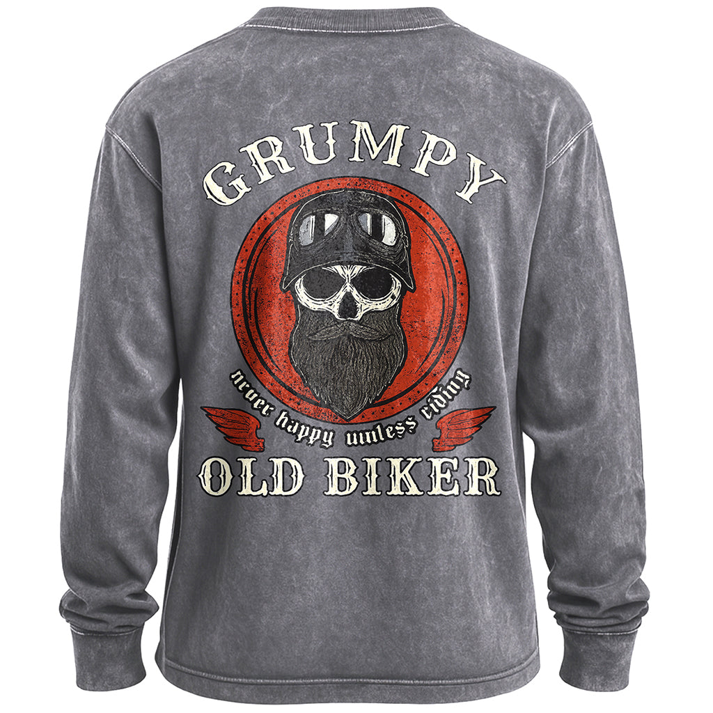 Langarm-T-Shirt mit Totenkopfmotiv eines mürrischen alten Bikers