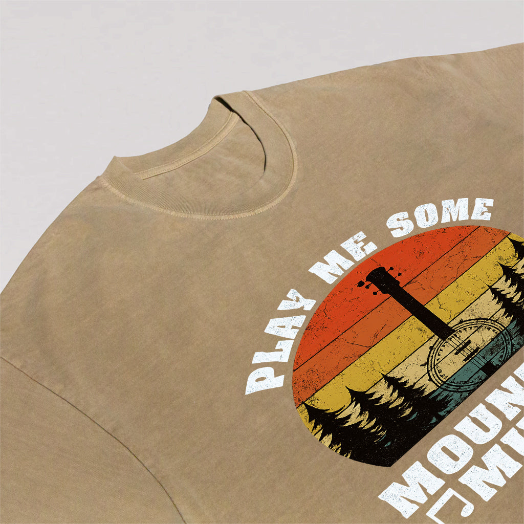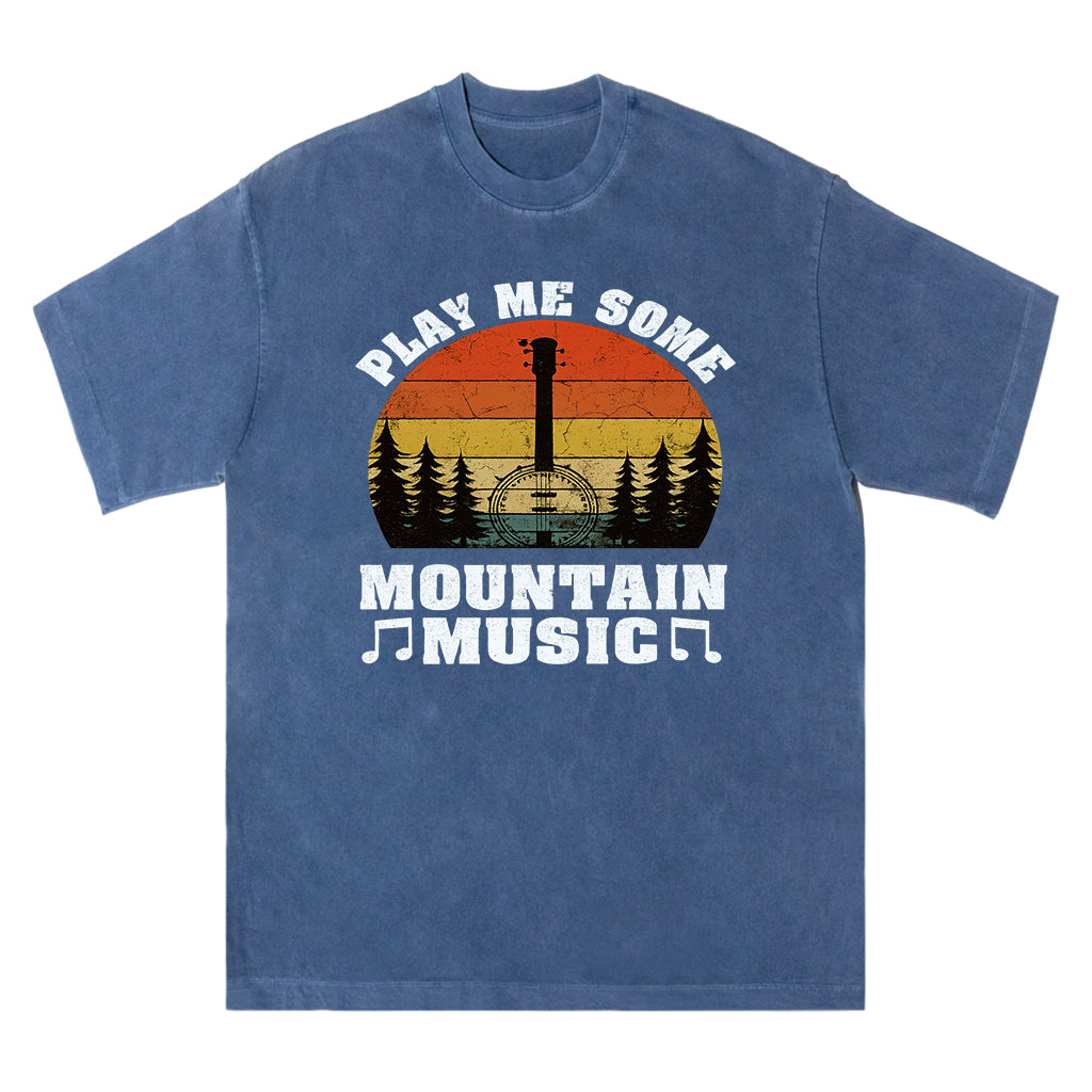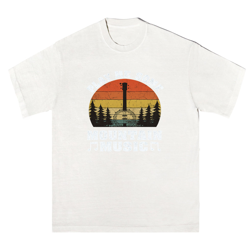 - Stil: T-Shirt mit Vintage-Mountain-Musik-Grafik