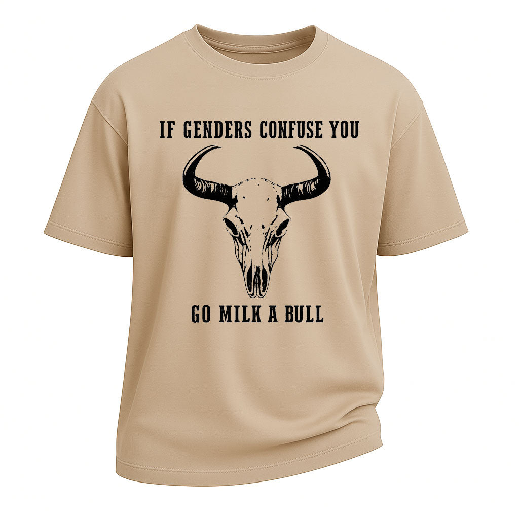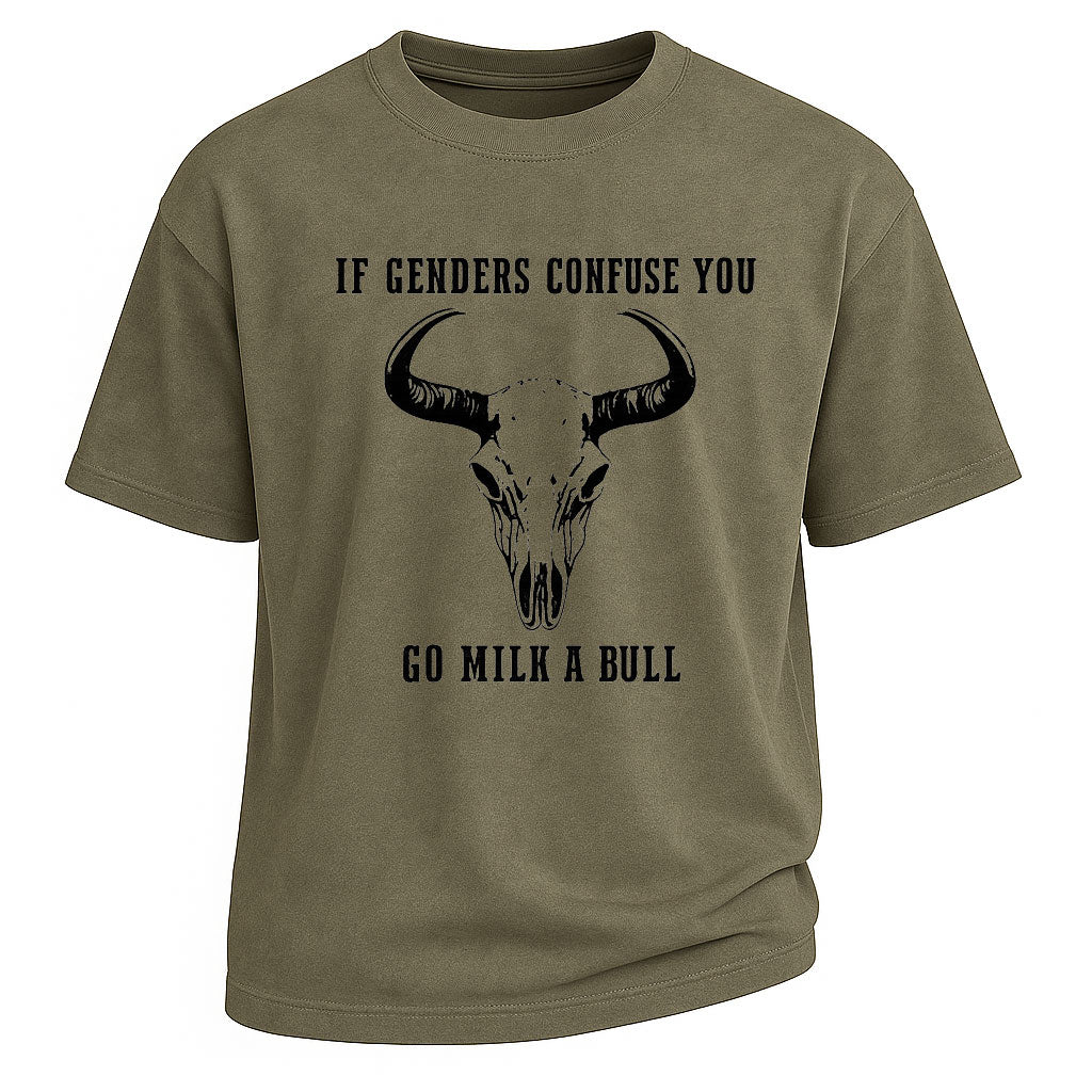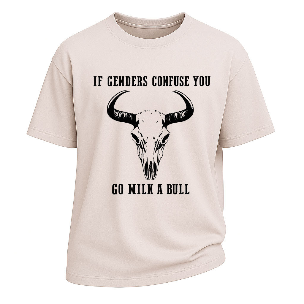 Maglietta grafica con teschio di toro e confuso di genere