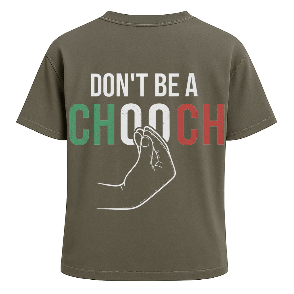 Aggiungi un tocco di umorismo italo-americano al tuo guardaroba con la maglietta "Don't Be a Chooch" di LouMark. Con una scritta audace nei colori della bandiera italiana e una grafica che raffigura un gesto della mano, questa maglietta oversize è un'allegra dichiarazione culturale. Realizzata in 100% cotone 260G, offre comfort e resistenza, perfetta per un uso quotidiano con carattere.
