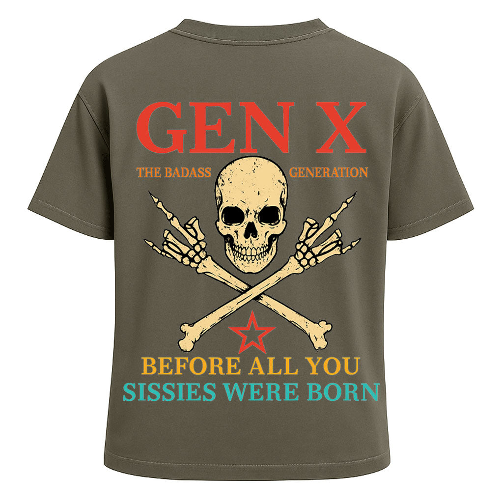 Mostra il tuo orgoglio per la Generazione X con la t-shirt oversize "Gen X Skull" di LouMark. Realizzata in pesante cotone puro 260G, questa t-shirt offre comfort e resistenza in una vestibilità oversize rilassata. L'audace stampa sul retro presenta un teschio con ossa incrociate e gesti delle mani, evidenziati dalla frase senza mezzi termini: "GEN X – The Hardest Generation – Before All You Sissies Were Born". Un omaggio ribelle alla grinta e alla tenacia di una generazione che si distingue.