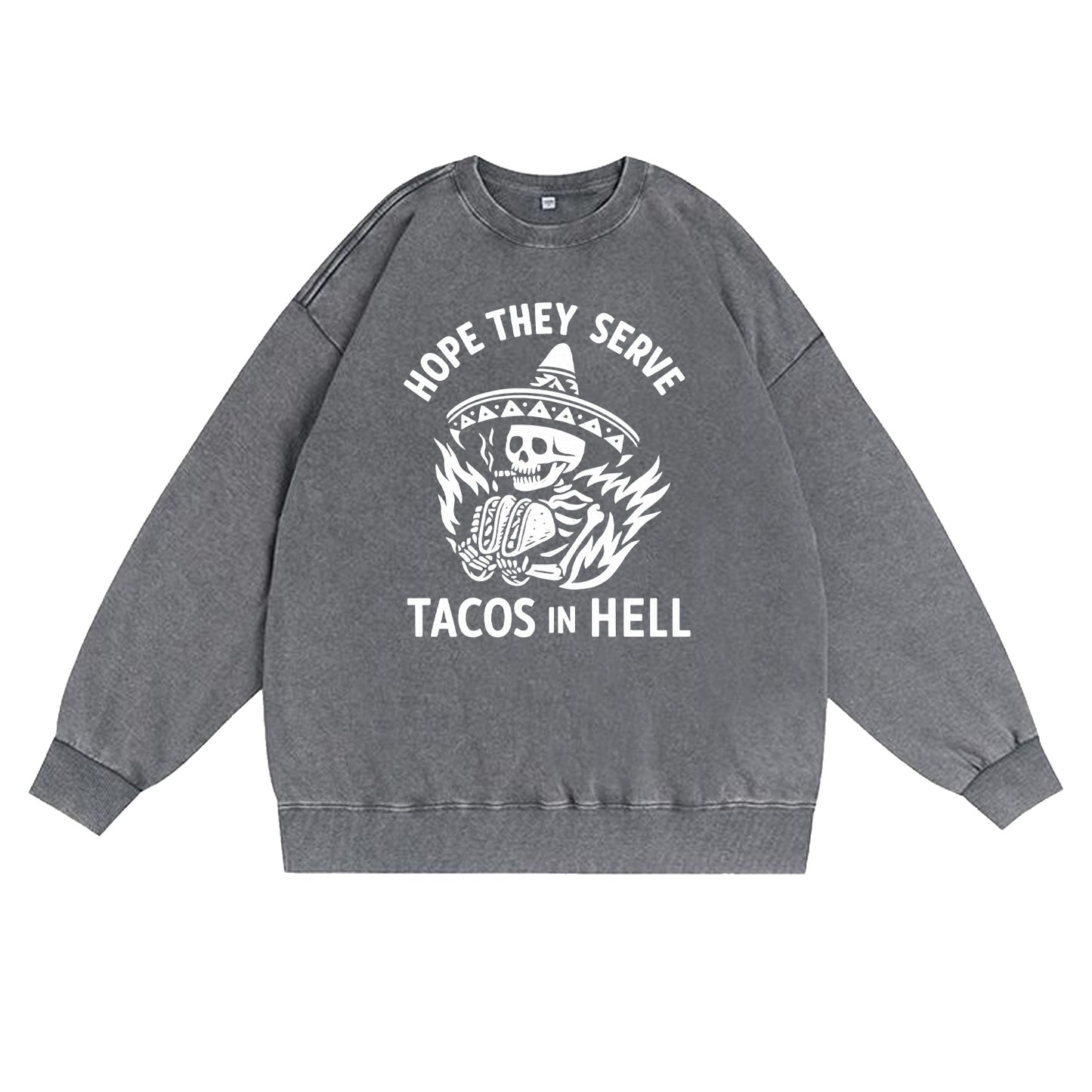 Felpa con la scritta "Spero che servano tacos all'inferno"