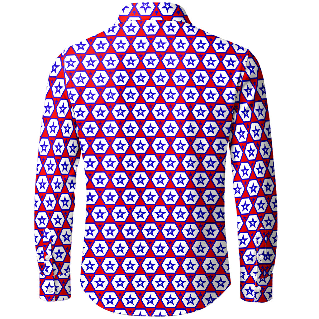 Maglietta a maniche lunghe con stampa 3D a forma di reticolo di stelle patriottiche
