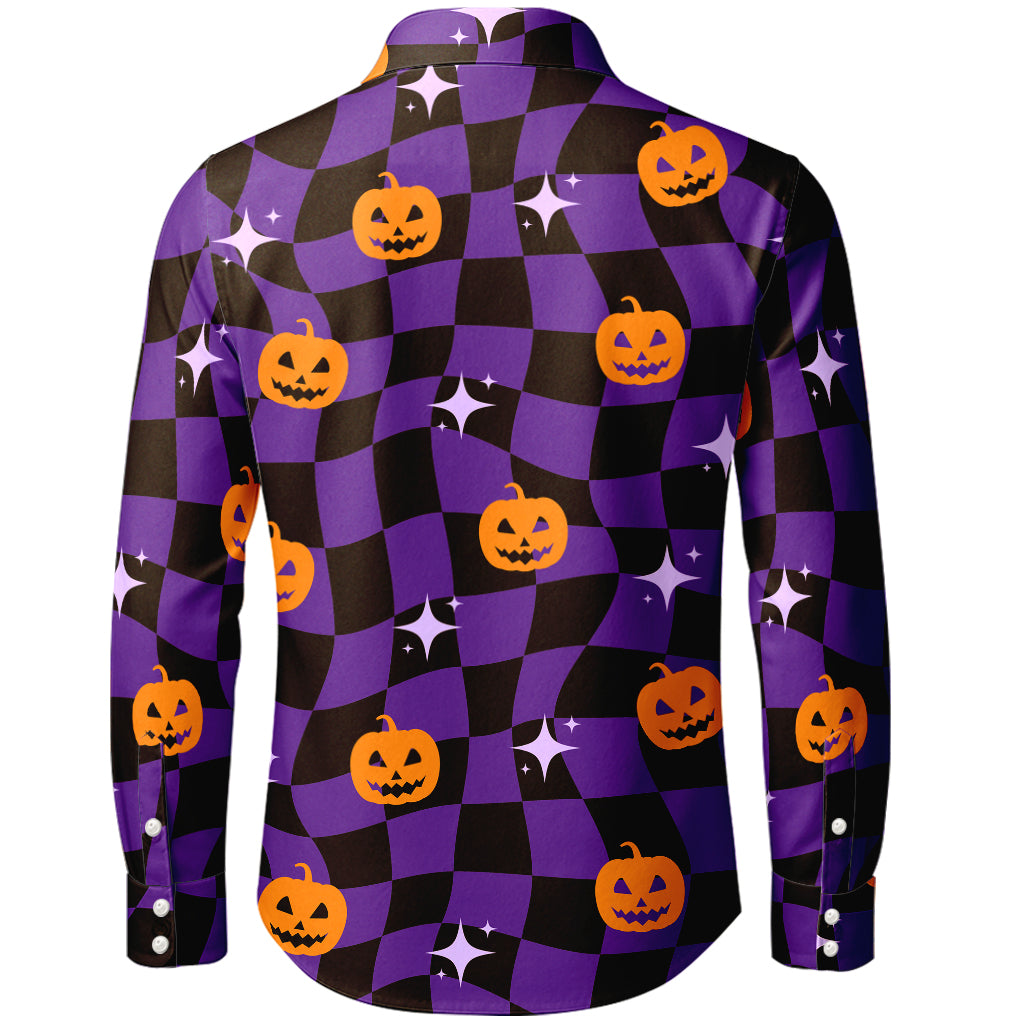 Camicia a maniche lunghe con motivo a quadri ondulati e motivo Jack-O'-Lantern