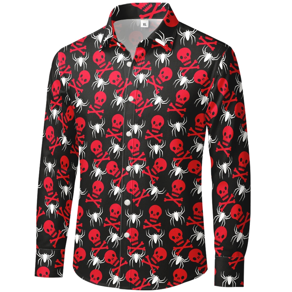 Maglietta a maniche lunghe con teschi e ragni rossi