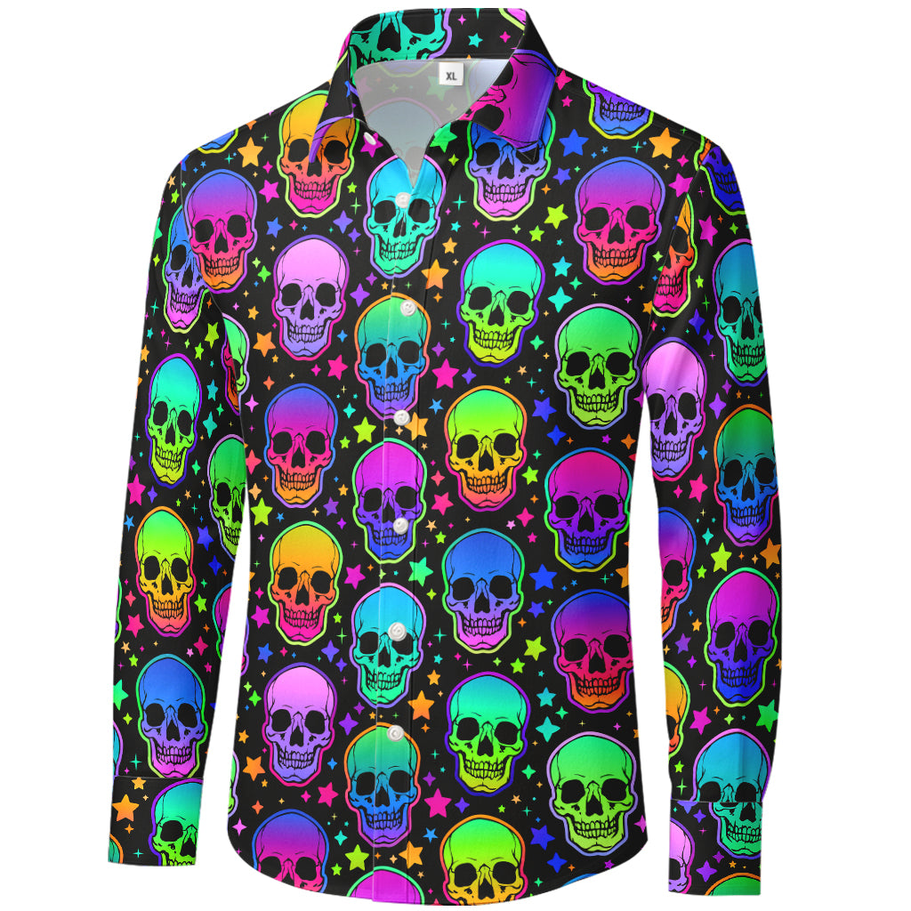 Maglietta a maniche lunghe con teschi arcobaleno al neon