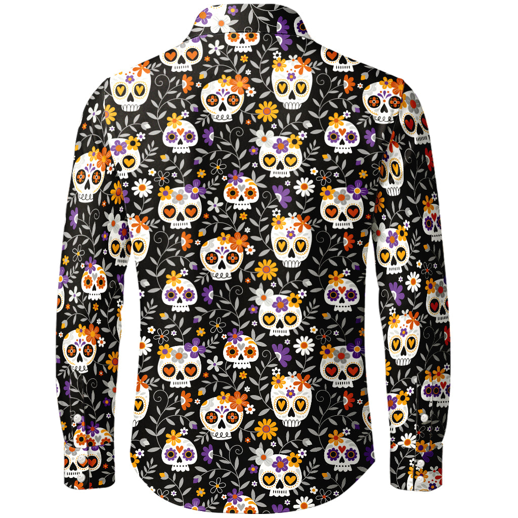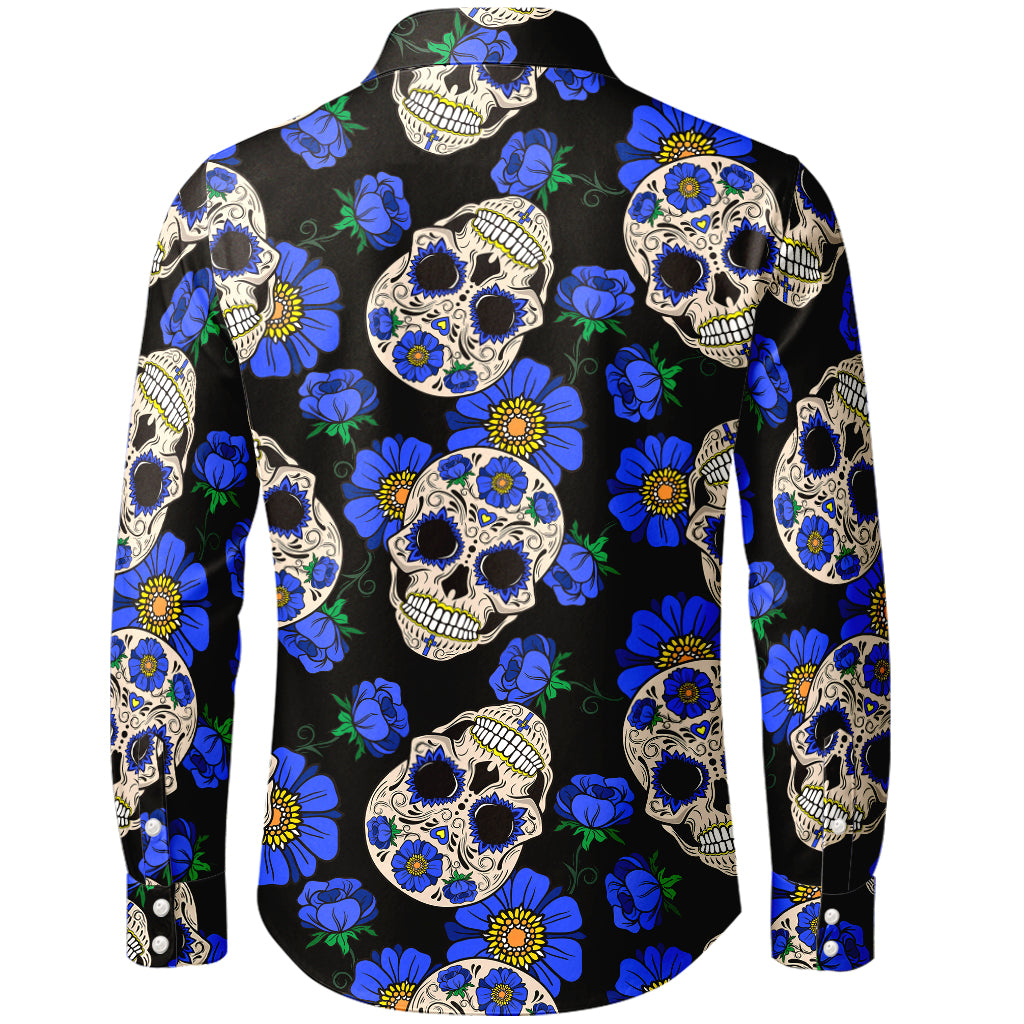 Camicia a maniche lunghe con teschio di zucchero e fiori blu