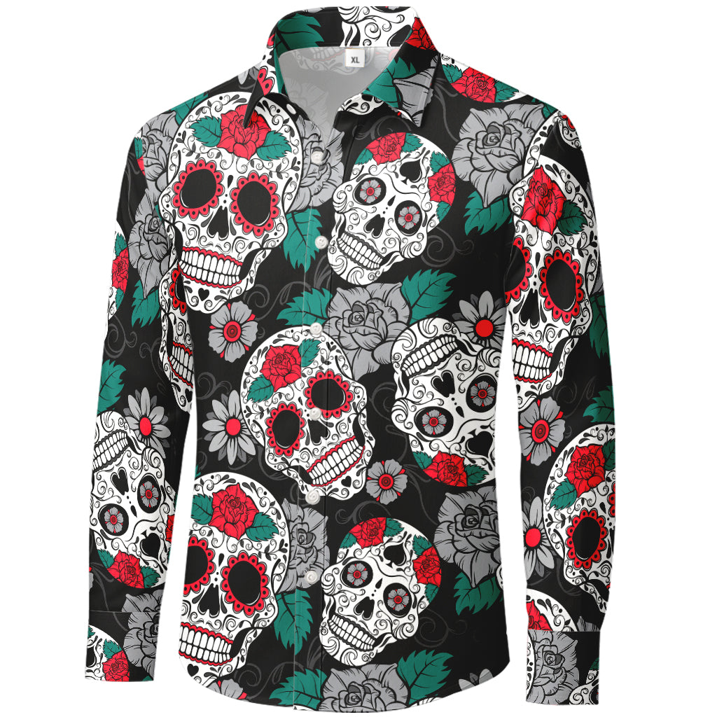 Maglietta a maniche lunghe con teschio di zucchero e rosa rossa