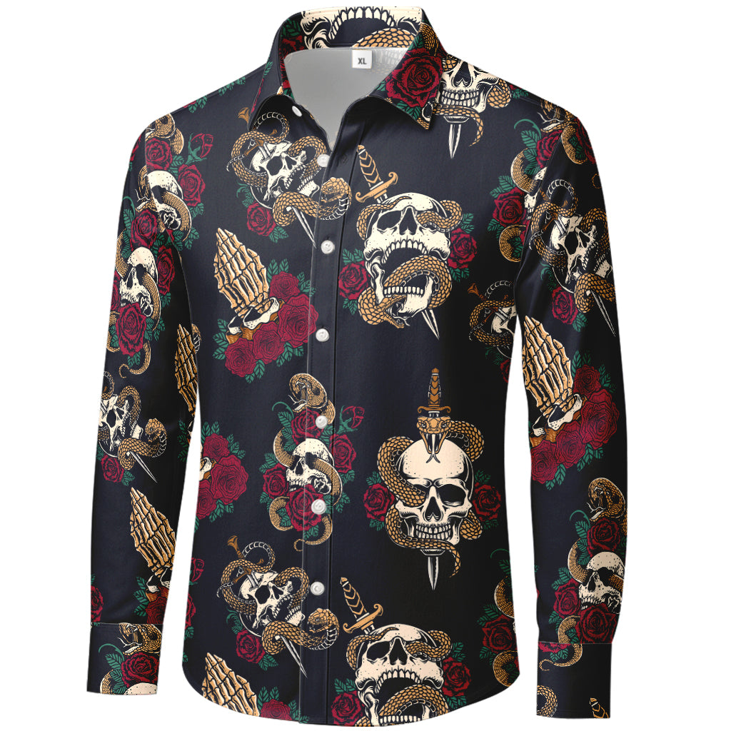 Maglietta a maniche lunghe con teschi, serpenti e rose