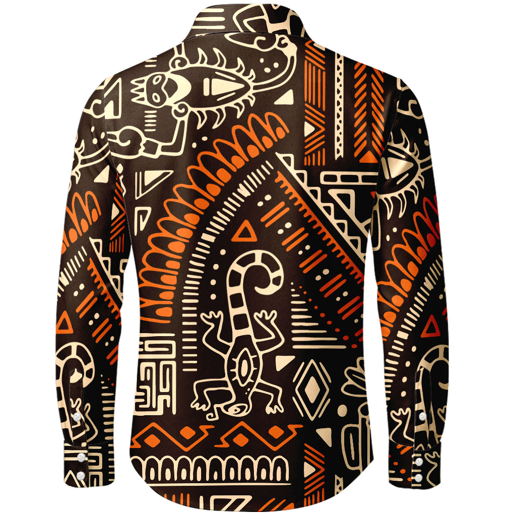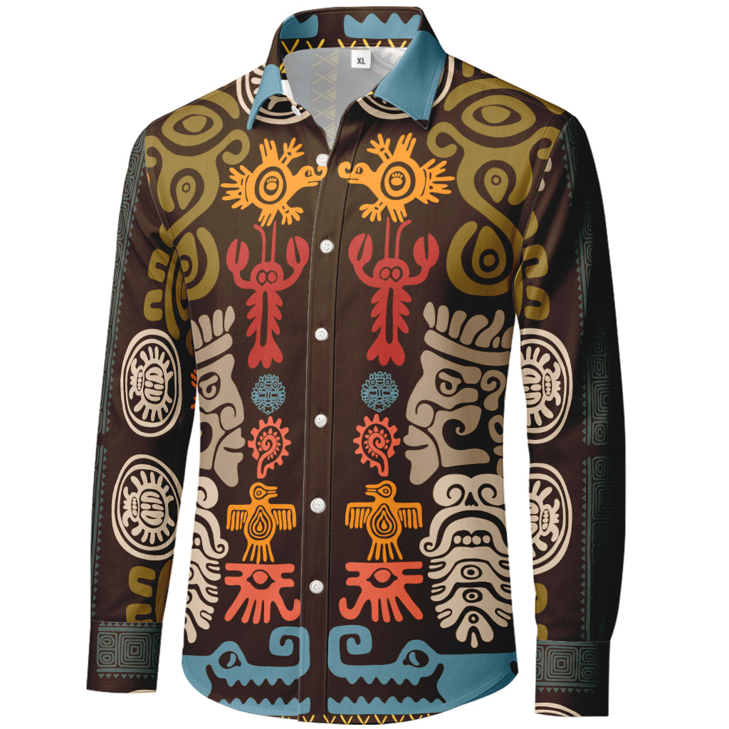 Camicia a maniche lunghe con bottoni e glifi totemici aztechi