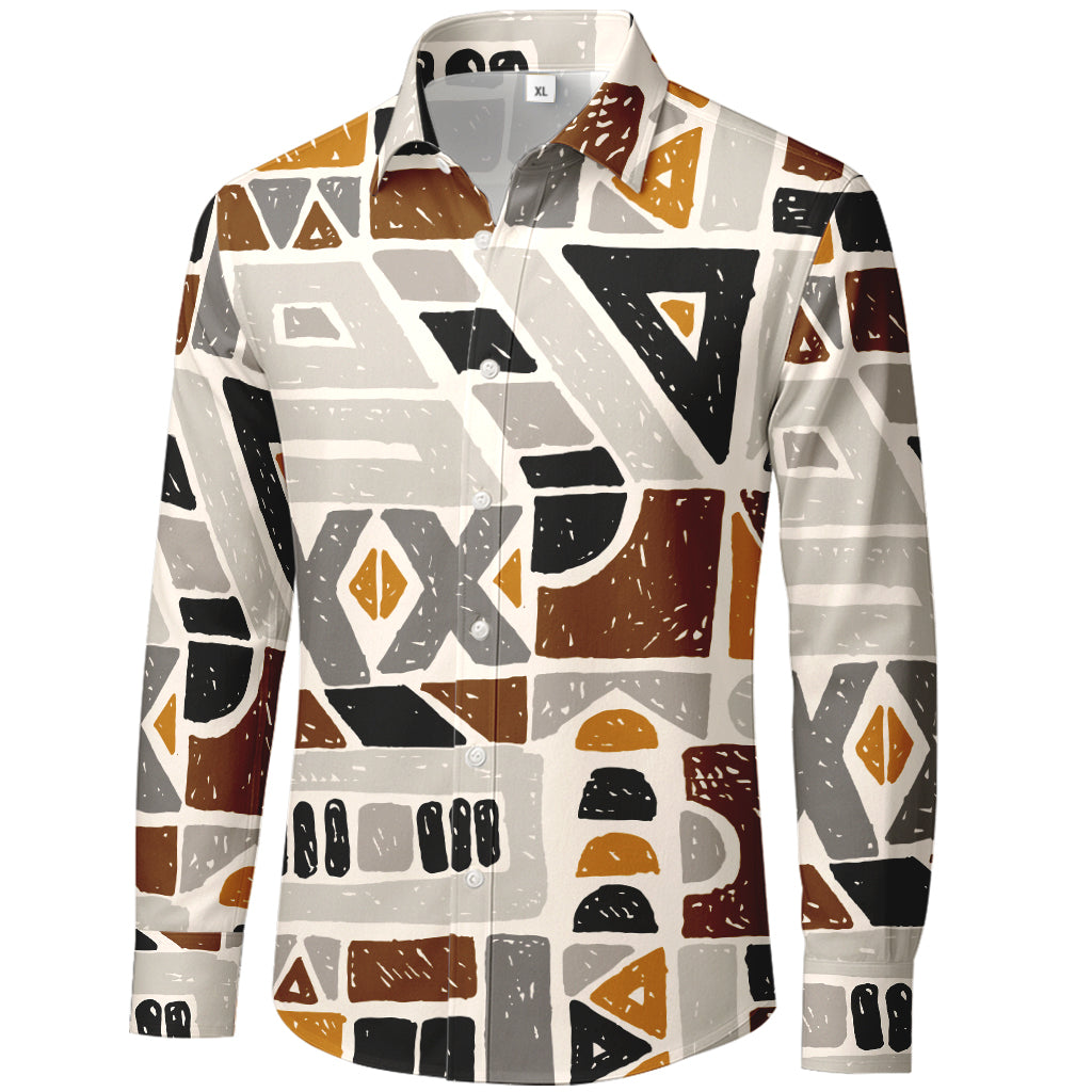 Camicia a maniche lunghe con bottoni e motivi geometrici color terra