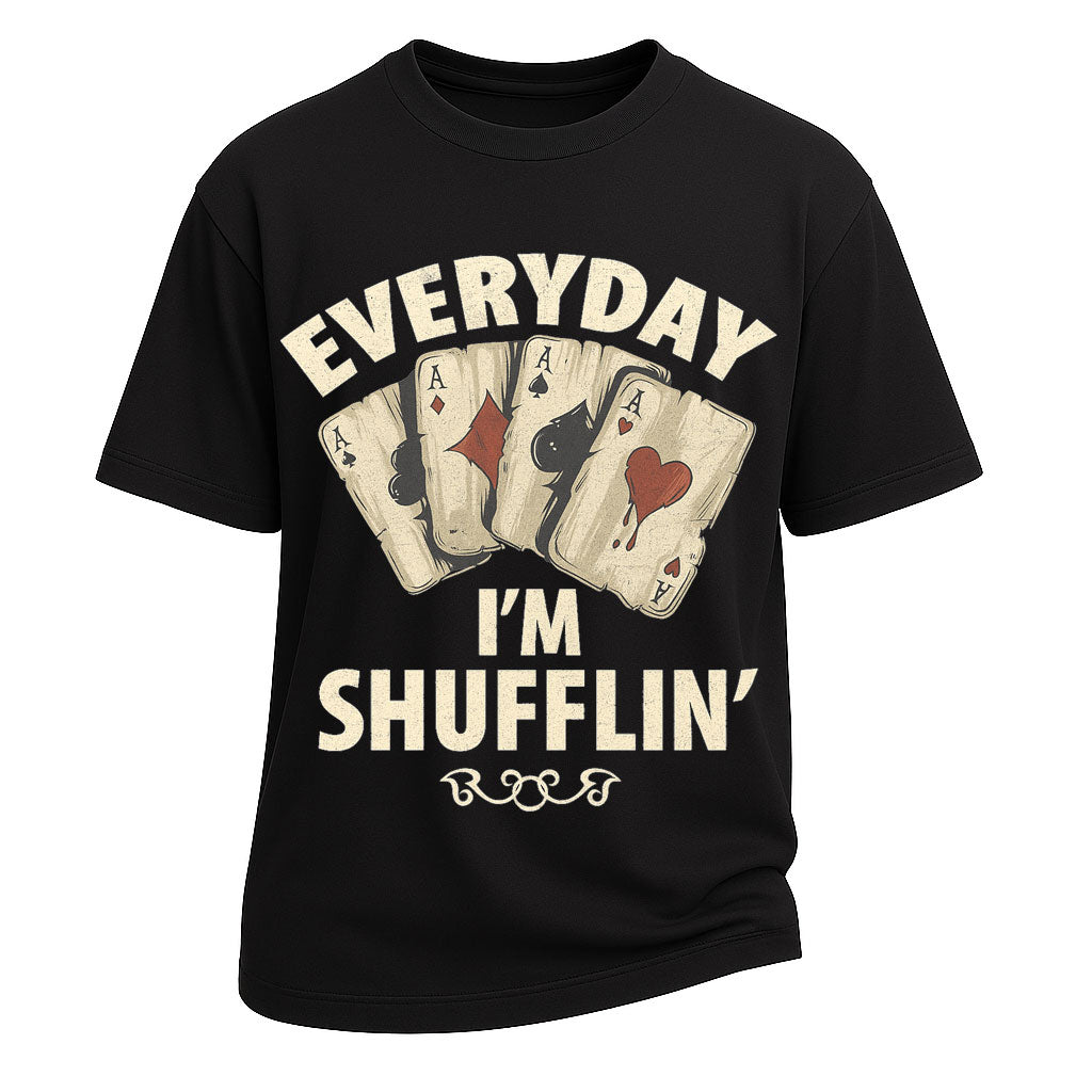Porta il divertimento del tavolo da poker nel tuo guardaroba con la t-shirt oversize "Everyday I'm Shufflin'" di LouMark. Realizzata in pregiato cotone 100% pesante 260G, questa maglietta unisce il comfort a un audace look vintage. La vestibilità oversize offre un look rilassato, mentre la grafica del mazzo di carte invecchiate aggiunge un tocco retrò giocoso. Perfetta per i giocatori di carte, le serate al casinò o per chiunque ami l'umorismo con stile.
