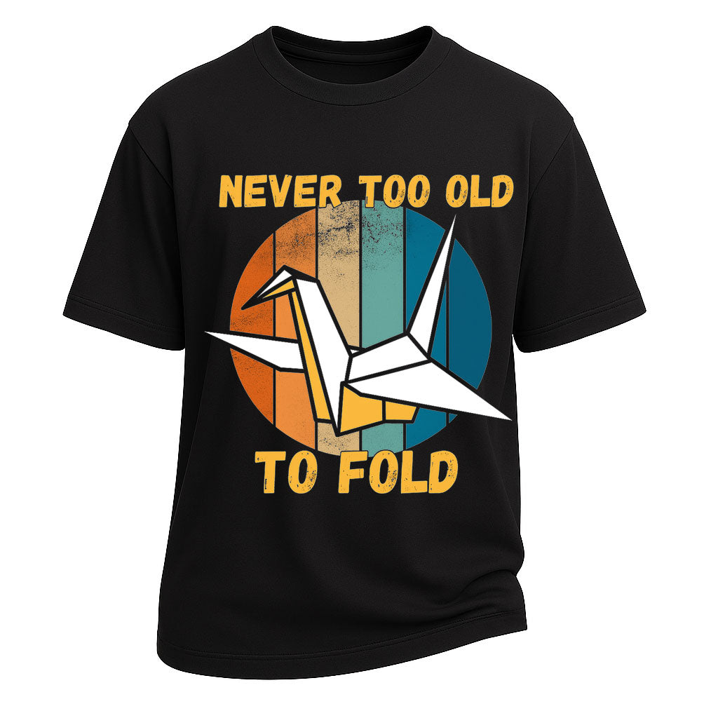 Mantieni vivo l'umorismo e la saggezza con la maglietta "Never Too Old To Fold" di LouMark. Realizzata in pesante cotone 100% 260G, questa maglietta oversize offre una vestibilità strutturata e un comfort casual. Il design presenta un'audace gru origami su uno sfondo circolare retrò con la frase "NEVER TOO OLD TO FOLD". Un arguto omaggio all'età, alla resilienza e allo spirito giocoso.
