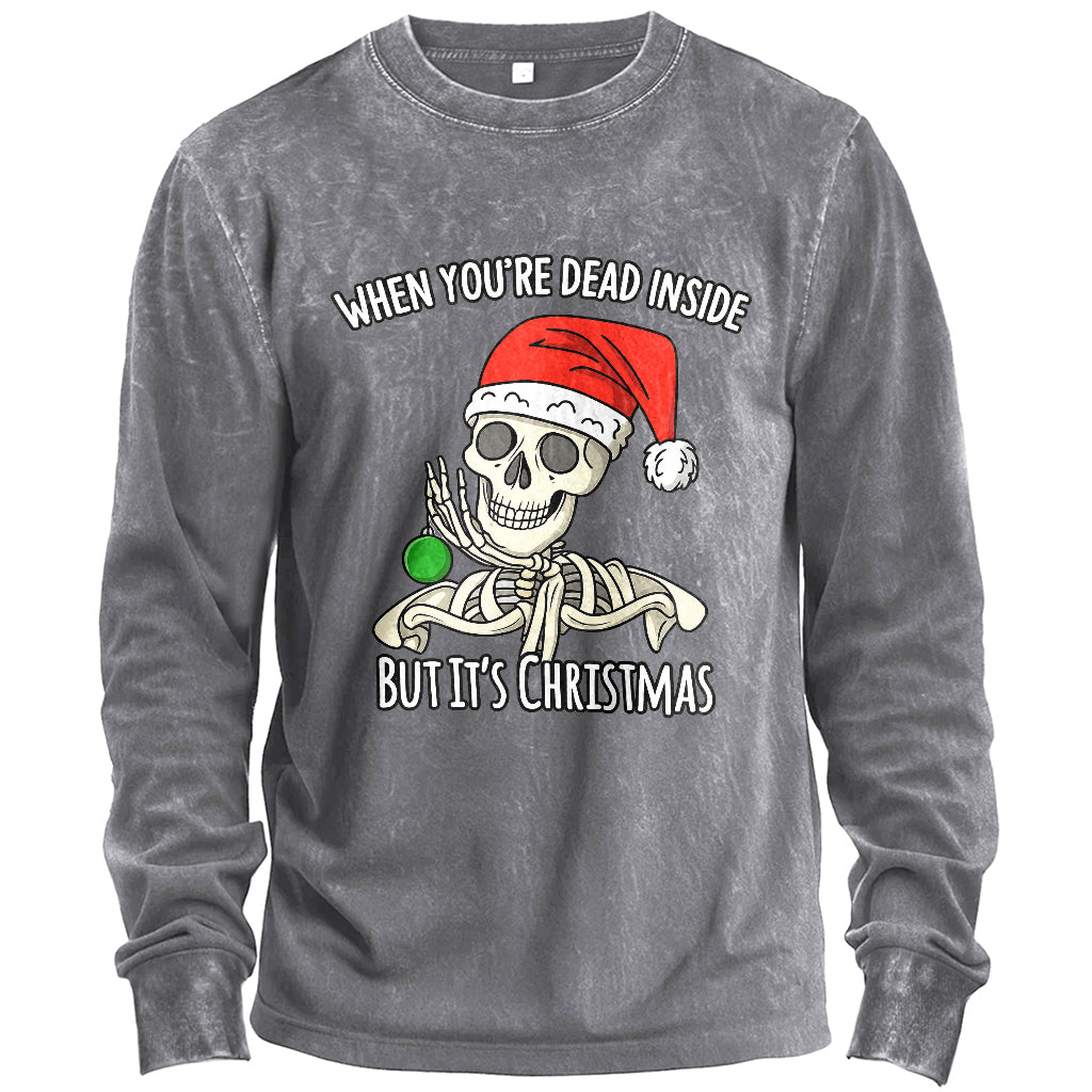 Maglietta a maniche lunghe con scheletro "Dead Inside But It's Christmas"