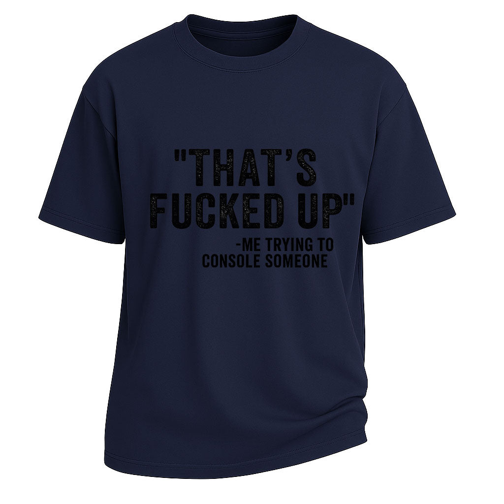 Quando l'empatia incontra l'onestà imbarazzante. Questa maglietta grafica LouMark cattura quei momenti in cui le parole falliscono, ma almeno ci hai provato. Perfetta per chi consola come fanno le persone vere: senza mezzi termini. Progettata con un testo nero in grassetto su una classica base bianca, dona un tocco crudo e familiare all'abbigliamento quotidiano.