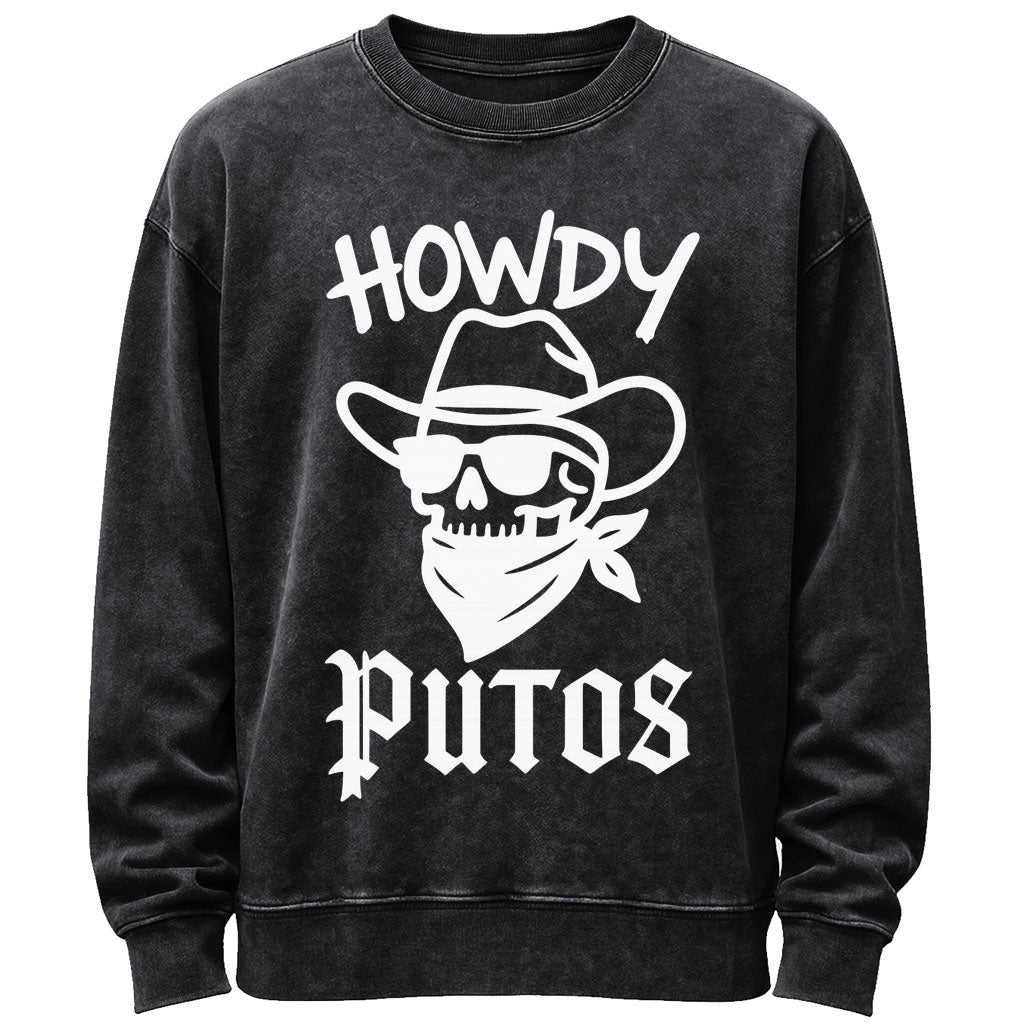 Felpa da cowboy con teschio occidentale Howdy Putos