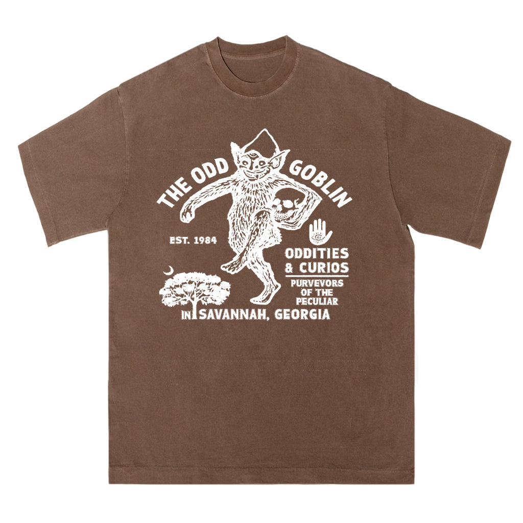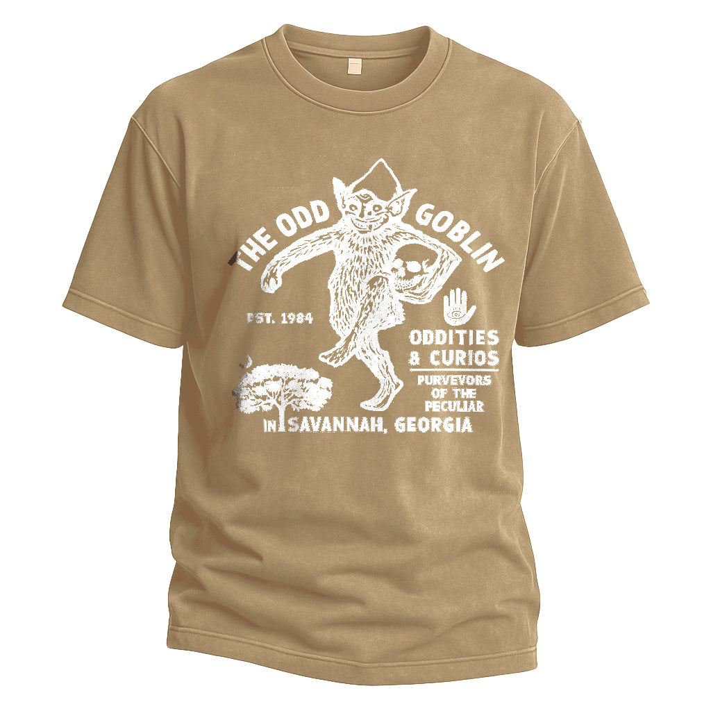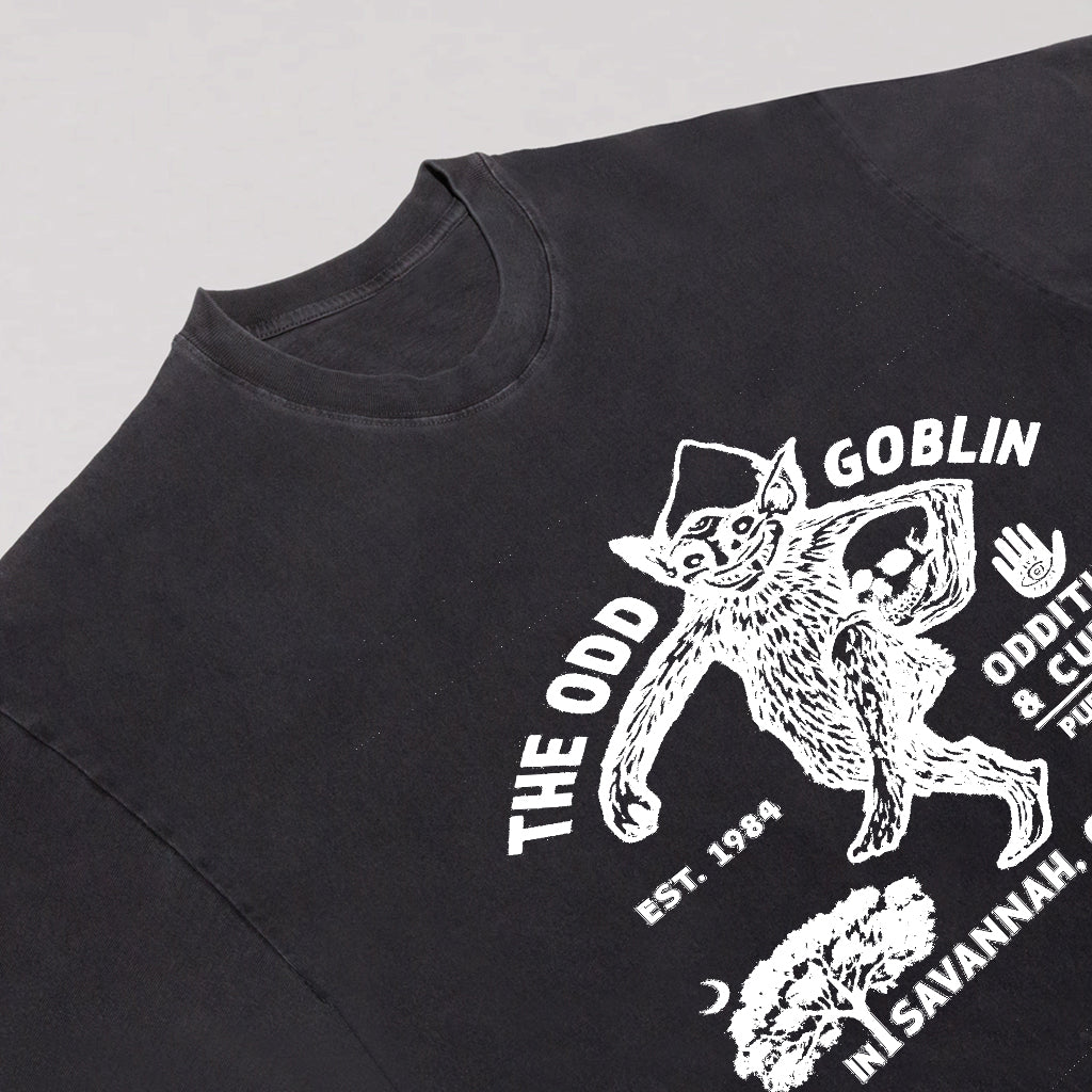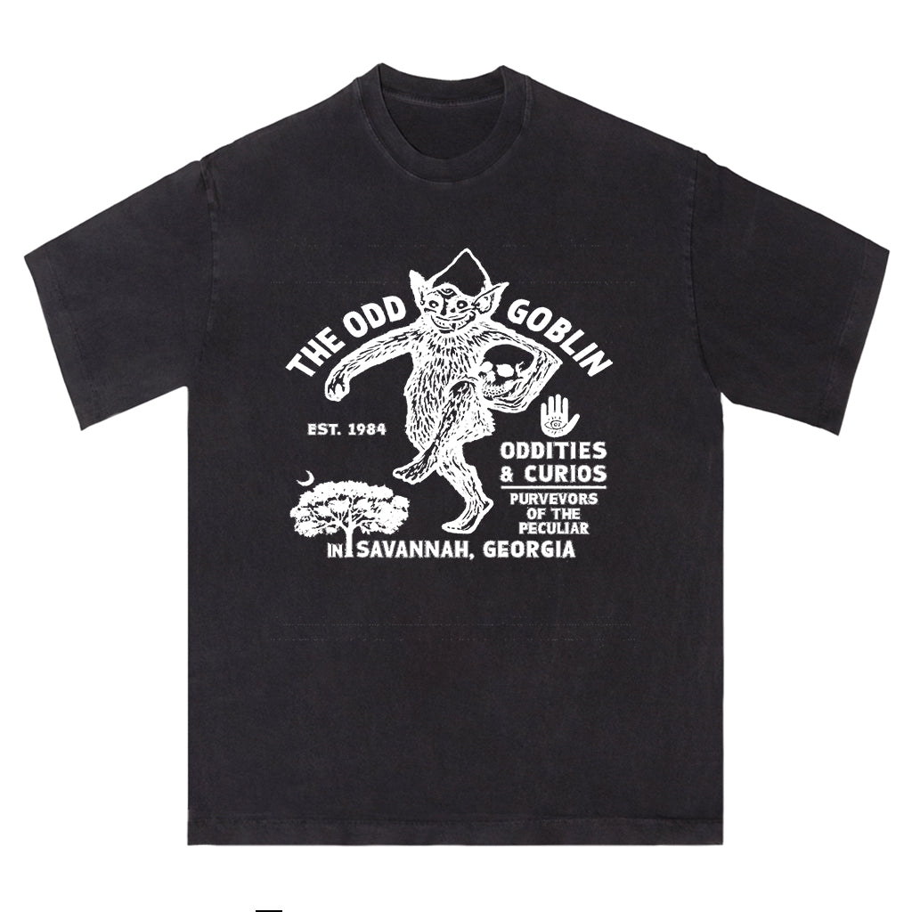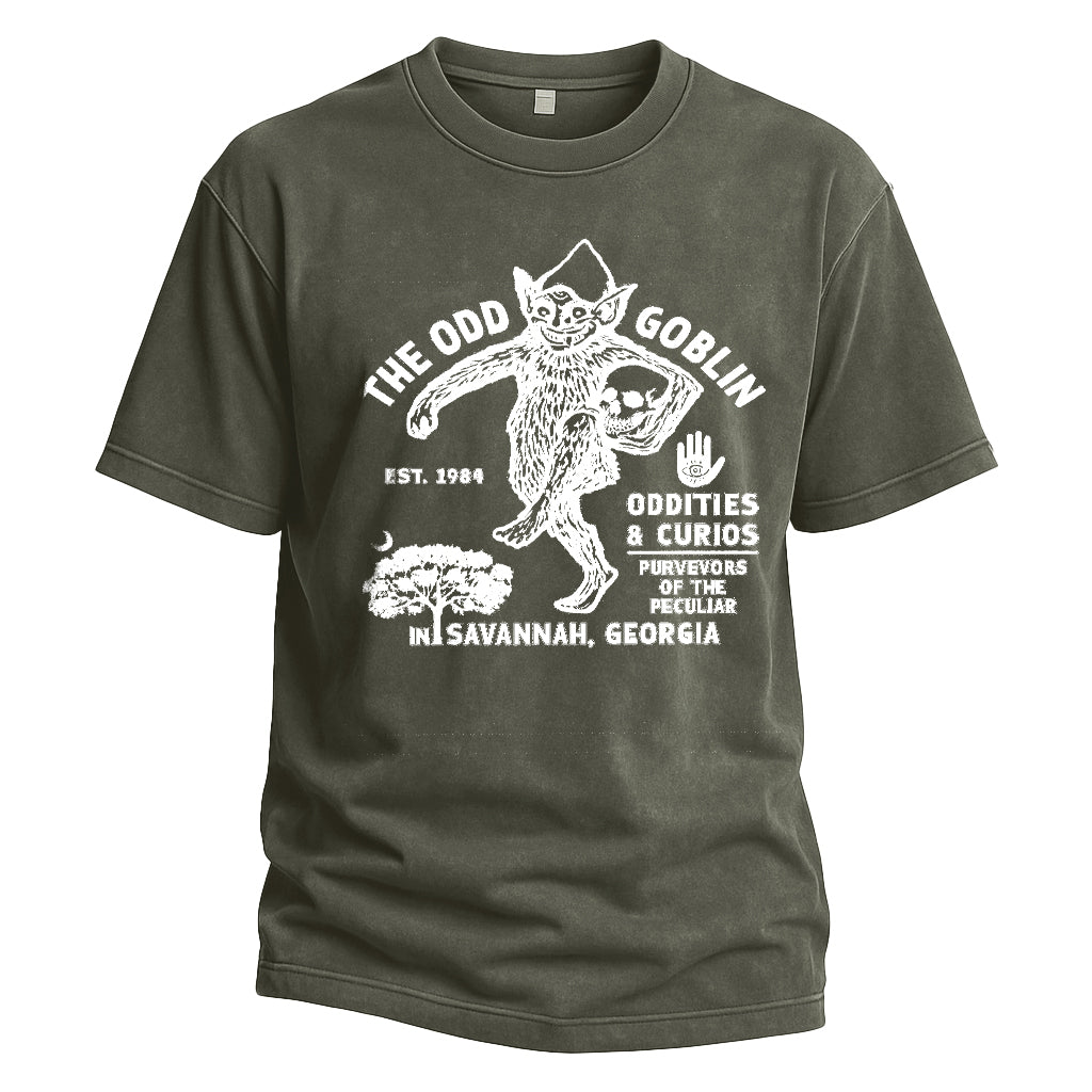 Entra nell'eccentrico mondo di The Odd Goblin con la maglietta Odd Goblin Savannah di LouMark. Questa maglietta blu navy slavato presenta una grafica bianca vintage raffigurante un goblin circondato da testi che evidenziano "Oddities & Curios", "Savannah, Georgia" e l'anno di fondazione 1964. Realizzata in 100% cotone, unisce un carattere unico a una vestibilità comoda.